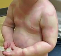 This afebrile baby presents with a target-shaped, centripetal rash. He has been taking amoxicillin for 5 days for an ear infection.