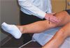 This patient is treated with immobilization for 4 weeks and does fairly well. There is no evidence of growth arrest after 1 year. Over the next 3 years, however, she begins to experience periodic swelling of her knee and a feeling that her knee is giving way. Eventually, she seeks medical attention for these symptoms. Examination reveals atrophy of the vastus medialis muscle of her left knee (Figure 1), positive results of a patellar push test (Figure 2), and positive results of a Lachman test (presence of a soft end point) (Figure 3). Results of the remainder of the knee examination are normal.