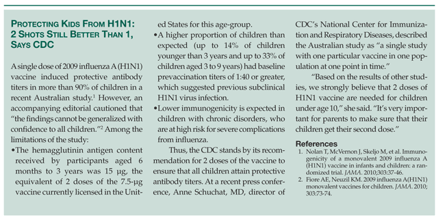 2. Fritsch BF. FDA Update on the H1N1 Flu Vaccine and Antiviral Medications. http://www.fda. gov/downloads/ForHealthProfessionals/UCM185724.pdf. Accessed November 1, 2009.
