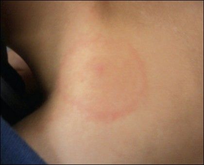 • An otherwise healthy 4-year-old boy who plays outdoors daily had a rash on his left shoulder. He had felt a “scab” there and picked off what probably was a tick. The diagnosis: Lyme disease.