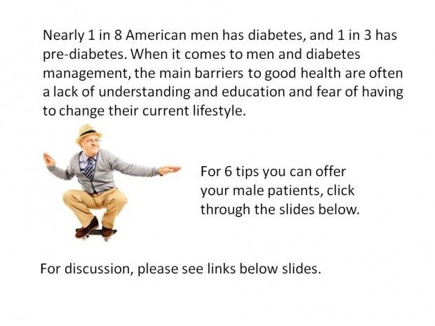 The rate of undiagnosed diabetes mellitus is high among men in the US. One reason may be because many men aren't comfortable talking about health issues. Click Here