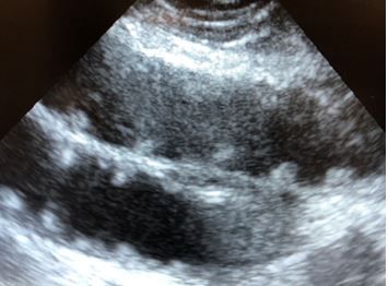 Vital signs & physical examination: She is moaning in pain. Vital signs are normal, but her blood pressure (BP) is in the 110s systolic, which seems low for the amount of discomfort she is in. Physical exam is otherwise normal except for diffused abdominal tenderness with guarding but without rebound.