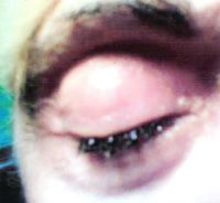 The patient was taken to a local emergency department. Her eyelids were partially stuck together and she had a corneal abrasion. Topical antibiotics and mild compresses were prescribed, and she was referred for ophthalmologic evaluation.