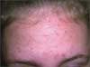 A combination clindamycin/benzoyl peroxide product has failed to resolve these lesions on a 15-year-old girl’s forehead. She does not have acne elsewhere.