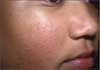 What appears to be acne on the cheeks of this 9-year-old girl has not responded to topical clindamycin. She was unable to tolerate tretinoin.