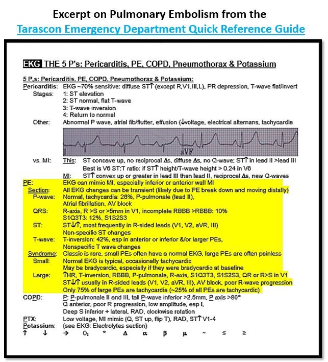 Classic PE syndrome has all of the symptoms, signs, and test results that you learned in medical school along with risk factors. Any medical student should be able to make the diagnosis, but unfortunately only a minority of cases present classically. ECG findings are more typical of large PE syndrome.