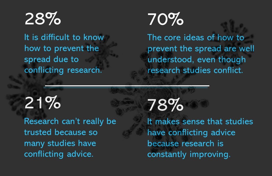 Effective ways to limit SARS-CoV2 spread are reasonably well understood, say US adults, and the science can be trusted, even though advice keeps changing.