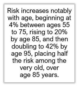 Risk increases notably with age, said Coresh and colleagues, beginning at 4% between ages 55 to 75, rising to 20% by age 85, and then doubling to 42% by age 95, placing half the risk among the very old, over age 85 years.