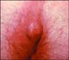 Symptoms and physical findings. Patients typically present with a painful, fluctuant mass near the posterior midline at the superior aspect of the buttocks. Examination of this area tends to reveal both a mass and a sinus opening within the intergluteal fold, which confirms the diagnosis.