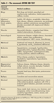 Medical disorders associated with anxiety. It is important to differentiate the various medical disorders that can present with anxiety symptoms and the anxiety disorders that are attributable to medical conditions. The mnemonic DIVINE MD TEST, described in Table 2, can be helpful in assessing the differential diagnosis.9