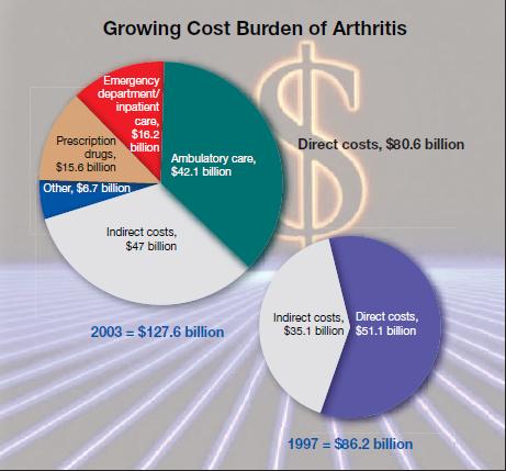 Although the workgroup did not study costs, direct and indirect costs attributed to arthritis were $127.6 billion in 2003, up from $86.2 billion in 1997 (Figure 3).