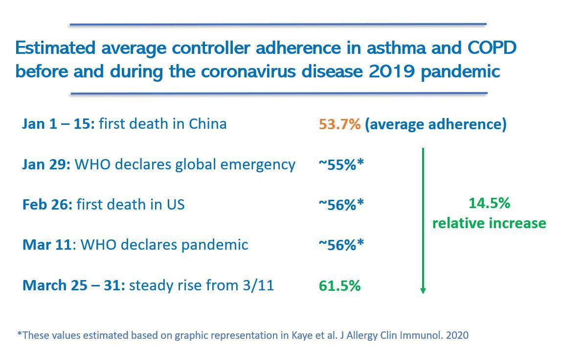 In addition, more than half (53%) of patients achieved <75% adherence to controller medications in the last week of March, an increase of 14.9% over the first week in January.