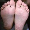 A 6-year-old boy has a rash on his hands and feet that erupted shortly after he started first grade. His parents are concerned that he may be allergic to something at school, such as chalk. He is otherwise healthy.