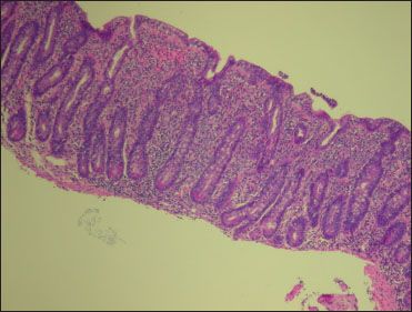 Elderly persons with celiac disease may have low folic acid and vitamin B12 levels or a calcium deficiency from occult intestinal malabsorptive abnormalities.44 Like their younger counterparts, elderly persons with celiac disease may present with dermatitis herpetiformis (Figure 2). In some older adults, biopsy-proven collagenous colitis may suggest celiac disease.46