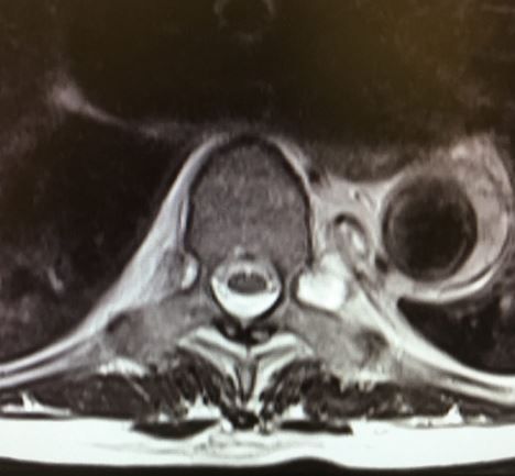 Initial diagnostic testing: An MRI of the spine is performed assess for nerve root compression with special concern for a possible spinal epidural hematoma (image).
