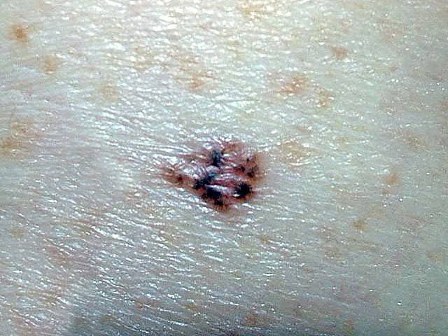 A 57-year-old man discovered a relatively small (1 cm), pigmented nodule of uncertain duration on his left arm during a cutaneous self-examination. The patient had a previous skin cancer.