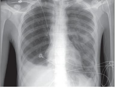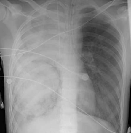 Although the patient was observed to be stable at the end of surgery, extubation was unsuccessful. Acute respiratory distress syndrome developed, and the patient's clinical status progressively worsened. Tracheostomy, high-frequency mechanical ventilation, and extracorporeal membrane oxygenation were required.