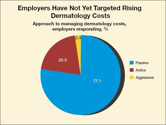 More than three quarters (77%) of employers characterized their approach to managing dermatology costs as passive (Figure 3). "Even with biologics," said Fleischer, "there does not seem to be an enormous effort to control costs." Whether employers will take a more aggressive approach depends on how quickly dermatology-related costs escalate, he predicted.