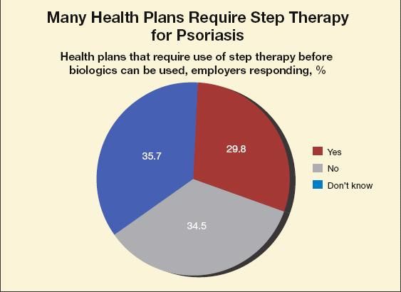 In the Galderma report, 43% of employers said their health plans' formularies included biologic medications, while 13% of employers said biologics were not included (44% did not know). Regarding use of step therapy before starting biologics, 29.8% of respondents said their plans required that patients start treatment with a less expensive medication first (Figure 4). "If dermatological costs increase rapidly," Fleischer said, "we could expect that more of the plans will require some kind of step therapy."