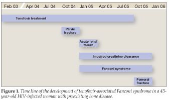 As a result, Fanconi syndrome-likely related to treatment with tenofovir-was diagnosed, and her antiretroviral therapy was stopped. Before this hospitalization, she had been on her tenofovir-containing regimen for approximately 3 years (Figure 1). At discharge, raloxifene was prescribed for her bone disease.