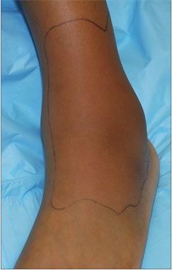 Temperature is 38.2°C (100.7°F); other vital signs are normal. Examination of the left lateral malleolus reveals a 12 x 10-cm area of erythema, warmth, and edema. There is no induration or fluctuance, pustules, vesicles, papules, or abrasions. Palpation reveals mild tenderness over the anterior aspect of the left foot and left ankle. Range of motion is minimally limited because of discomfort; pulses and sensation are intact.