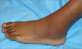 THE CASE: A 7-year-old boy has had left ankle pain for 2 days. Neither he nor his mother can recall any recent trauma to the joint. He is usually very active, but he has been unable to bear weight on the left foot and has been resting in bed. His mother reports that he had some tactile fevers, which were transiently relieved with ibuprofen, and that he has been eating and drinking normally. Despite the application of ice and elevation, the ankle has become red and swollen.