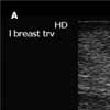 This patient was admitted to the pediatric hospital. Intravenous vancomycin therapy was started, and the abscess was drained by needle-guided ultrasonography. The left pectoralis region was scanned with a linear high-frequency probe in transverse and sagittal orientations (A and B). A 1.08 x 1.06-cm hypoechoic spherical mass was noted below the left areola, with some hyperechoic debris posteriorly. The surrounding subcutaneous tissue appeared edematous.