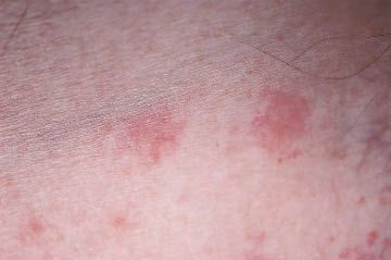 For 3 weeks, a 28-year-old man has had a pruritic, bilateral axillary rash. He stopped using deodorant, but the condition has not improved. The patient takes no medication and is otherwise healthy, although he reports having had a mild upper respiratory tract disorder that did not require treatment about a month earlier.