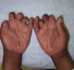 A 45-year-old African American man presented with heart disorders and congenital hand deformities. His previous diagnoses included hypertrophic obstructive cardiomyopathy and mitral regurgitation. Bilateral hand deformities took the form of short nubbin-like fingers with somewhat deformed thumbs. The fifth fingers showed clinodactyly with partially hypoplastic nails. Heart-hand syndromes include Holt-Oram syndrome, Tabatznik syndrome, familial brachydactyly, and polydactyly.
