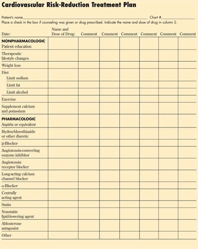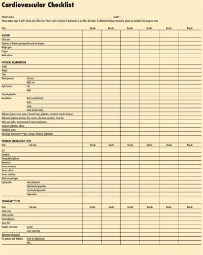 A cardiovascular risk reference guide, Framingham global risk assessment scoring guide, cardiovascular checklist, and cardiovascular risk-reduction treatment plan.