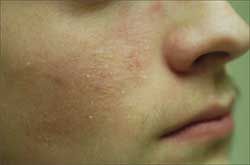 A 17-year-old boy presents with an intermittent asymptomatic rash on his cheeks that he says started 1 year earlier after a trip to Arizona over spring break. He is otherwise healthy, takes no medications, and has no other rashes.