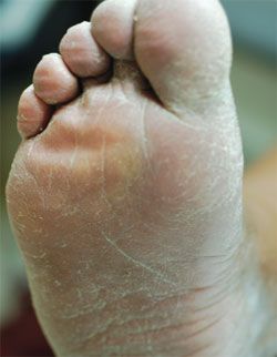 In this patient, the tinea pedis was treated with both oral and topical antifungals, and the EAC resolved. One option for oral therapy is terbinafine, 250 mg/d for 1 week every 3 months for 1 year. The cure rate is 93%.1