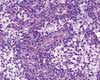 The tumor is invested by a richcapillary network, with cells radiallyarranged around minute fibrovascularstocks, which resemble rosettesand pseudopapillae. Extensive hemorrhageand degeneration resulted inpseudomicrocysts devoid of an epitheliallining. Fewer than one mitosis(with both perineural and lymphangiticinvasion) per high-power field isnoted within the tumor. The remainingpancreas shows evidence of chronicpancreatitis; the small intestine(duodenum) is unremarkable.