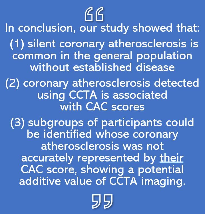 Bergström and colleagues thus set out in the current study to determine the prevalence of subclinical atherosclerosis in a general population without established heart disease, and to estimate the correlation between CCTA findings and CAC scores.