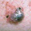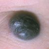 Biopsy results confirmed a benign cellular blue nevus, B. These nevi are evenly colored gray, bluish, or black and have symmetrical, smooth borders. Congenital or acquired, single or multiple blue nevi can arise at any location; however, they more often occur on the buttocks than on the face. These lesions are more common in women than in men. Although they are benign, blue nevi occasionally can become invasive.