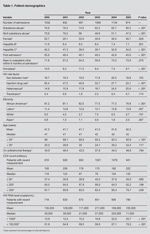 During the 6-year study period, there were 6045 admissions, with significant demographic changes in our population over the years (Table 1). Of note was the decline in admissions of substance abusers, illicit substance abusers, and patients who gave injection drug use as their HIV risk factor. Associated with the above was a decrease in admissions of patients coinfected with hepatitis C or B virus as well as homeless patients.