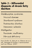 Use the results of these tests in combination with the history and physical examination findings to characterize the diarrhea as watery, fatty, or inflammatory and to develop a differential diagnosis. Once the diarrhea has been categorized, the differential diagnosis becomes more manageable (Tables 1, 2, and 3) and a more focused series of investigations can be done.11