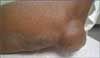 This patient continues to have periodic bouts of severe pain despite treatment with allopurinol (300 mg qd) and colchicine (0.6 mg qd). Multiple large tophi have erupted through the skin and caused ulceration on the right ankle. His most recent uric acid level was 6.6 mg/dL.