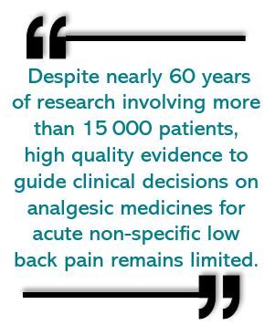 "Our review of analgesic medicines for acute non-specific low back pain found considerable uncertainty around effects for pain intensity and safety,” they write. As such, they say clinicians and patients “are advised to take a cautious approach to the use of analgesic medicines.”