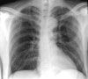 The patient is oriented to person only but follows commands. Temperature is 38.9°C (102.1°F); blood pressure, 136/73 mm Hg; heart rate, 81 beats per minute; respiration rate, 22 breaths per minute; and oxygen saturation, 97% on room air. Pulmonary and cardiac findings are unremarkable. The abdomen is soft and nontender. There is no peripheral edema. Neurological findings are nonfocal. A chest radiograph obtained as part of a fever workup is shown.