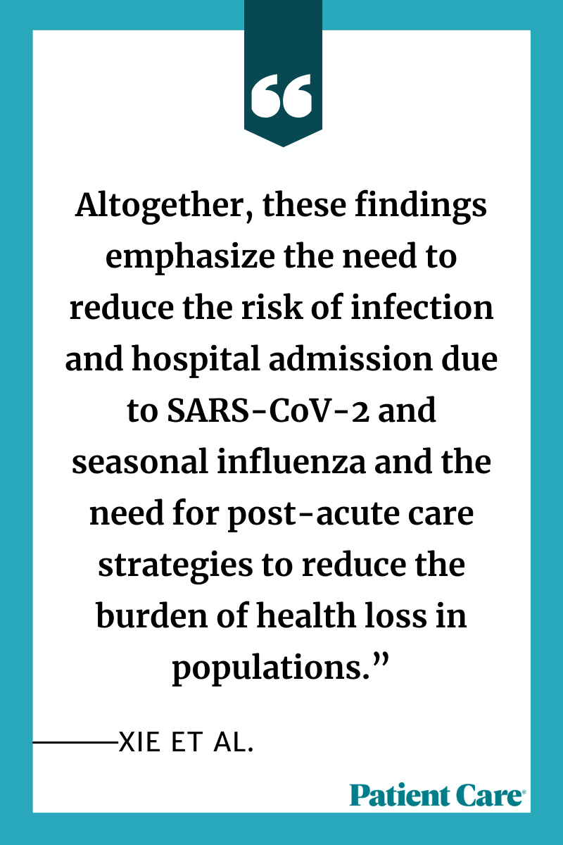 They concluded: “Altogether, these findings emphasize the need to reduce the risk of infection and hospital admission due to SARS-CoV-2 and seasonal influenza and the need for post-acute care strategies to reduce the burden of health loss in populations.”