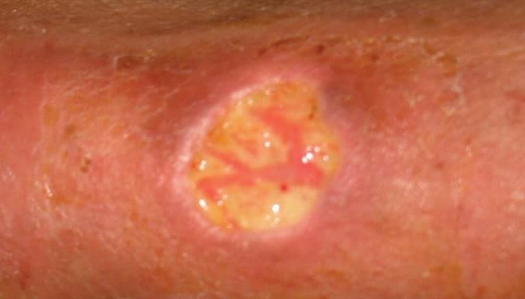 The most important clinical syndrome associated with cryptococcal infection in the immunosuppressed patient is meningitis. Once inhaled into the respiratory tract, the organism spreads via the bloodstream to other sites. Cases have been reported involving the skin (Figure 3), joints, bone, urinary tract and prostate, eye, cardiac tissue and pericardium, GI tract, peritoneum, thyroid, and larynx. The biological basis of the propensity of the organism for the CNS is unclear.