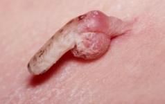 The lesion was excised in the office under local anesthesia and the base was electrodesiccated. The wound was dressed with antibiotic ointment and healing was uneventful. Pathologic examination of the lesion revealed a benign squamous papilloma with epidural hyperplasia, prominent hyperkeratosis, and focal cutaneous horn formation.
