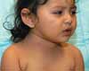 The patient is in mild respiratory distress, with inspiratory stridor and supraclavicular retractions. The posterior oropharynx is symmetric and free of masses, but there is a mass in the right lateral neck. There is no rash, and results of the neurologic examination are normal. Because of concern about her respiratory status, the child is sent to the emergency department.