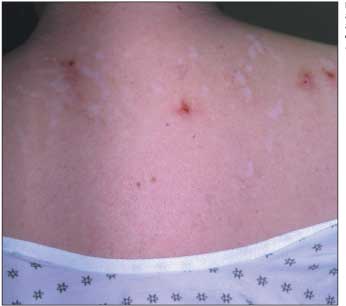 Lesions confined to easily reached areas strongly suggest neurotic excoriations. The presence of multiple old scars is a clue to the chronicity of the condition, as evidenced in a middle-aged woman who presented with excoriated papules and scarring on the arms (Figure 4) and back (Figure 5).