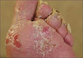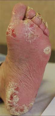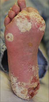 For 6 years, a 71-year-old man has had these painful growths on his feet. He has tried various topical creams without success.