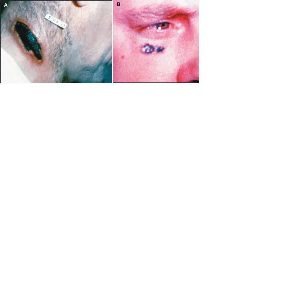 Lesions A and B were identified as cutaneous anthrax. Although quite rare in the United States, anthrax has garnered increased attention because of its otential use as a bioterrorism agent.