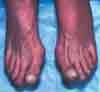 was firstdescribed by Hippocrates some 2500years ago. Significant clubbing is usuallyclinically obvious; it is characterizedby enlargement of the terminaldigital phalanges of the fingers (FigureA) or toes (Figure B), with loss ofthe normal 15-degree nail-bed angle(the angle between the proximal nailand the cuticle). Clubbing is present ifthe ratio of the anteroposterior diameterof the finger at the nail bed to theanteroposterior diameter at the distalinterphalangeal joint is greater than1:1. Schamroth test may also indicatethe presence of clubbing (Box).This condition may be clinicallyconfused with a variety of other conditions, including hypothyroidism, infectionsof the terminal phalanges,chronic paronychia, and exaggeratedcurvature of the nails (as seen insome African Americans).Clubbing suggests the presenceof a significant occult illness, suchas pulmonary disease, inflammatorybowel disease, liver disease, or cyanoticcongenital heart disease. (Thispatient had bronchiogenic carcinoma.)Among patients with pulmonarydisease, clubbing is a common manifestationof lung tumors and chronicseptic conditions, such as lung abscessor bronchiectasis. Arteriovenousfistulas in the lung that causeshunting may also result in clubbing.Although clubbing has been reportedin patients with benign fibromas ofthe lung and pleura, tumors associatedwith clubbing are usually malignant.Finger clubbing is uncommonin patients with chronic obstructivepulmonary disease or chronicpulmonary tuberculosis.Laboratory evaluation may includea variety of screening tests, includingcomplete blood cell count;fecal blood screening; ECG; and pulmonary,liver, and thyroid functiontests. The most important screeningtest, however, is chest radiography.Treatment is directed at the underlyingpathology. More advancedcases may be associated with a burningsensation in the fingertips, jointpain, and severe pain when the affectedlimbs are moved. These secondarysymptoms must also be addressed.