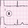 While he is in the ED, his chest pain and dyspnea resolve spontaneously. A second ECG (B) is obtained.