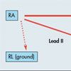 Detection of electrode reversal begins with recollection of normal lead vector configuration (Figure 3). Reversing the LA and LL electrodes gives rise to changes in lead I (which then displays lead II complexes), lead II (which then displays lead I complexes), and lead III (which then displays the old lead III complex, but inverted) (Figure 4). The augmented leads are similarly affected: the waveforms displayed in lead aVF become those displayed in lead aVL-and vice versa-while lead aVR is unaffected (Figure 5). In summary, 2 inferior leads (II and aVF) wind up in a lateral position (I and aVL), and 2 lateral leads (I and aVL) are switched to an inferior position (II and aVF). Lead III is simply inverted-something that does not catch the eye of most clinicians who read ECGs because of the normal wide variability in the QRS vectors of lead III.6